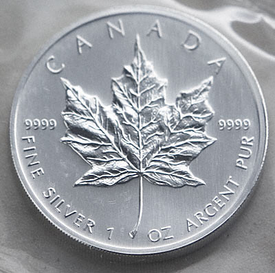 Canadian Maple Leaf in SilberSeit 1988 erscheint diese Silbermünze jährlich. Sie ist besonders beliebt wegen ihrer hohen Silberreinheit und problemlos bei vielen Banken erhältlich. Das Motiv ist jährlich gleichbleibend und zeigt das kanadische Ahornblatt (englisch: Maple Leaf). Auf der anderen Seite ist ein Portrait der Königin Elizabeth II. zu sehen.